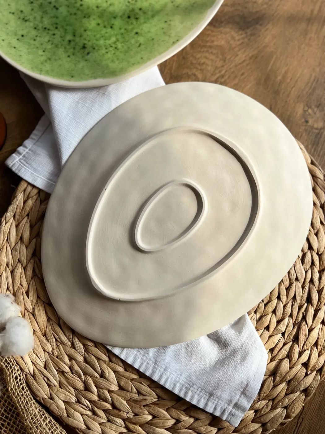 42 złŚrednica: 22 cm, wysokość: 3 cm. Waga: 650 g. Ręcznie robione, produkt może różnić się od zdjęcia